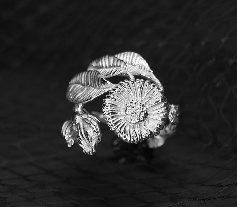 - MARGHERITINA CON FOGLIE E BOCCIOLI TENERAMENTE INTRECCIATI.