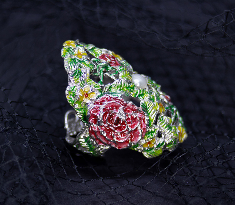 • PERLA AVVOLTA DA UN COLORATO BOUQUET DI ROSE MAGISTRALMENTE DIPINTE.