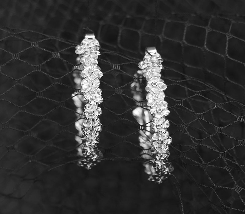 - ORECCHINI CREOLA CON SPLENDIDI FIORELLINI “NON TI SCORDAR DI ME”.